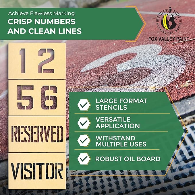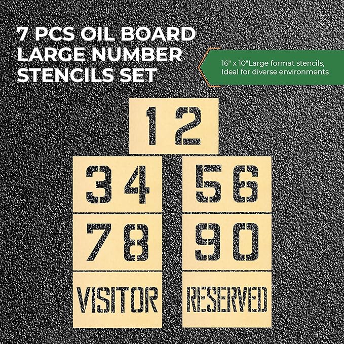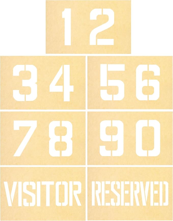 - PRECISION-CUT STENCILS FOR PROFESSIONAL RESULTS – Struggling with messy signs? Our parking lot stencils for painting provide clean, crisp edges every time. Perfect for parking lot stencils numbers, these stencil sets include “Reserved” and “Visitors” options. Achieve a professional look whether you’re working with concrete stencils or pavement stencils for clear, long-lasting signage.