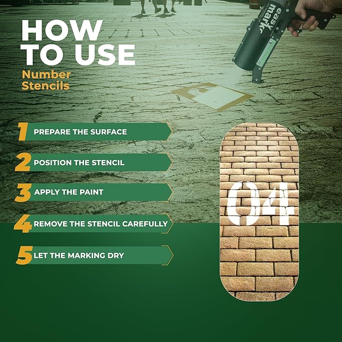 - CREATE CLEAR, LEGIBLE SIGNS IN SECONDS – Simply apply, paint, and peel these stencil numbers for fast, flawless results. Whether you’re working with concrete stencils or pavement stencils, these stencils help you create clear, easy-to-read signs that stand out in any parking lot or driveway.